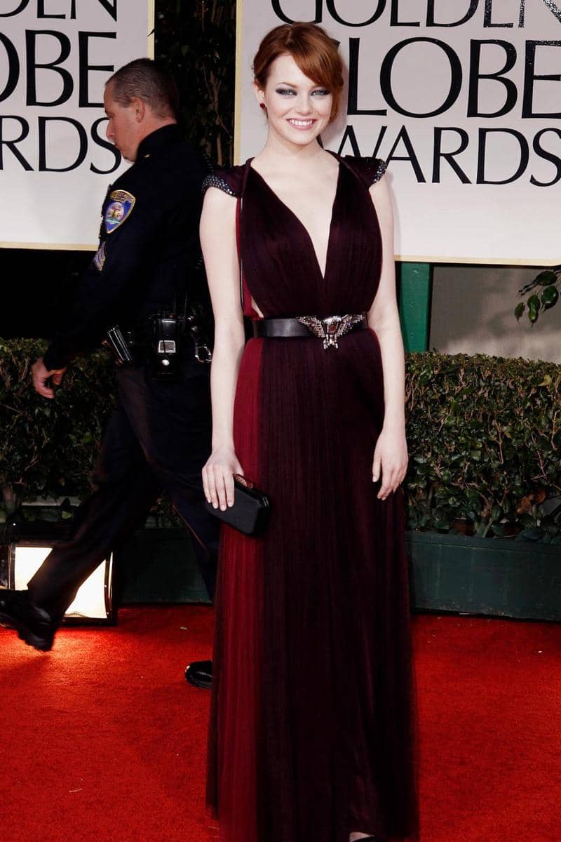 Mendapat nominasi pada film-nya Easy A, Emma terlihat sangat memukau saat menghadiri Golden Globes tahun 2011, dia memilih gaun Calvin Klein berwarna pastel yang calm namun memberi kejutan dengan detail cutout bagian belakang.