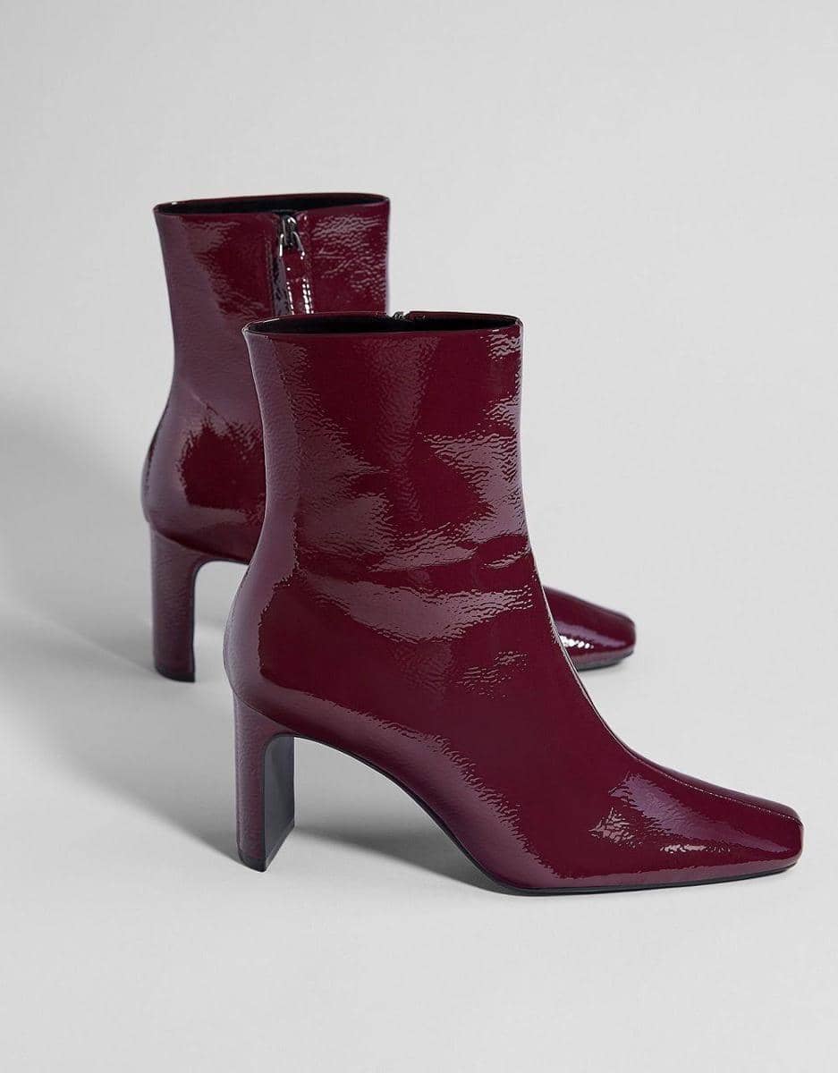 Mid heel patent finish ankle boots, Bershka, IDR 699,900