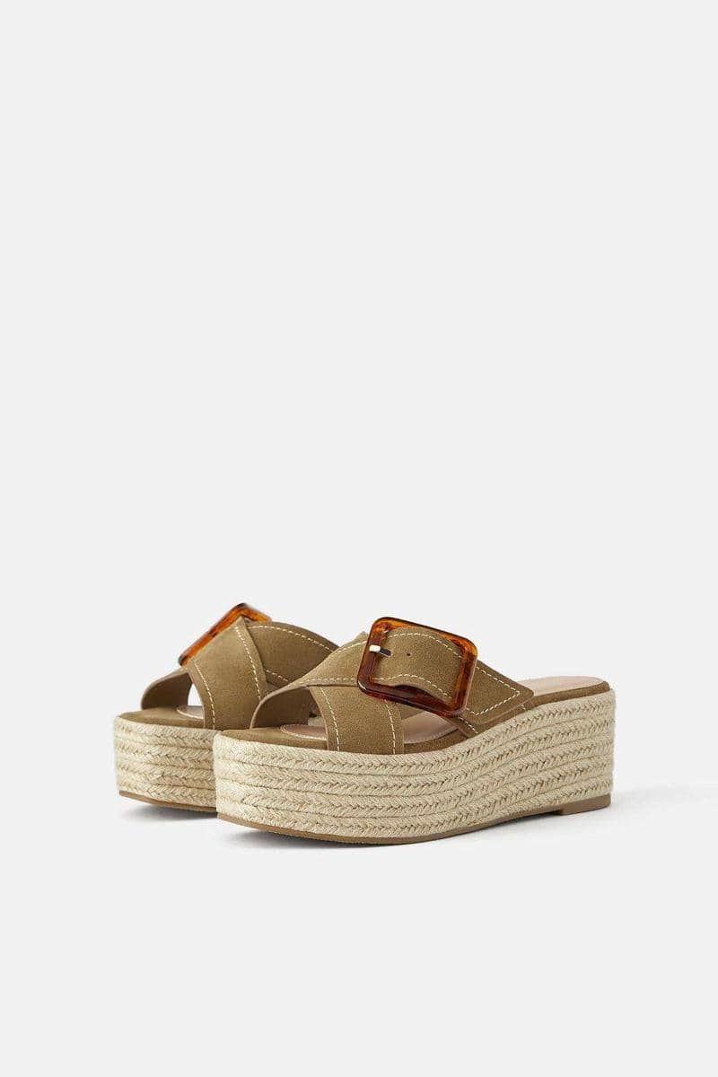 Leather platform wedges with tortoiseshell buckle, ZARA, IDR 1,199,900