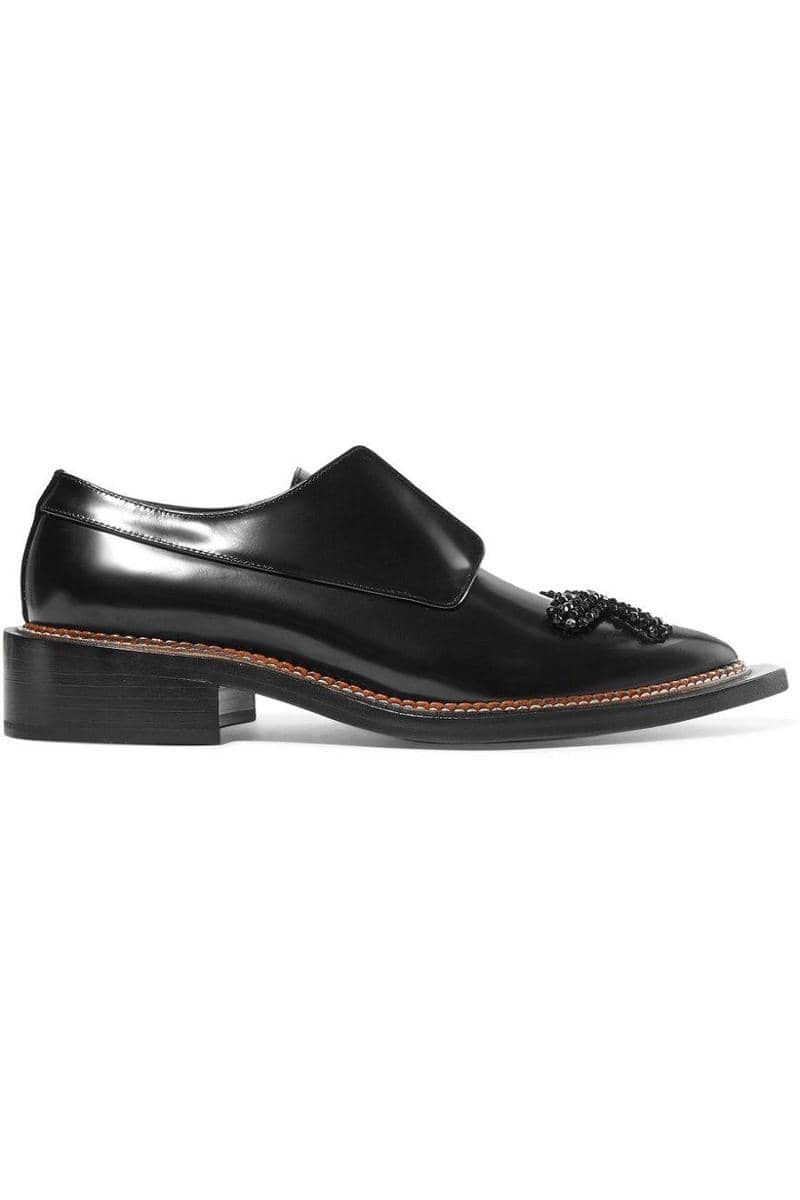 Appliqued crystal-embellished leather brogeus, Simone Rocha, $754