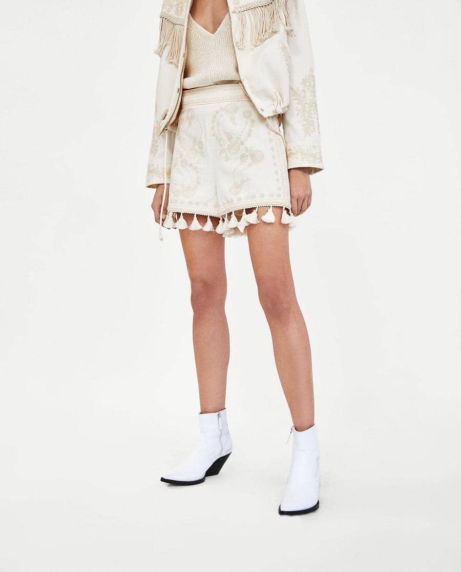 Embroidered short pants with tassels, ZARA, IDR 479,900