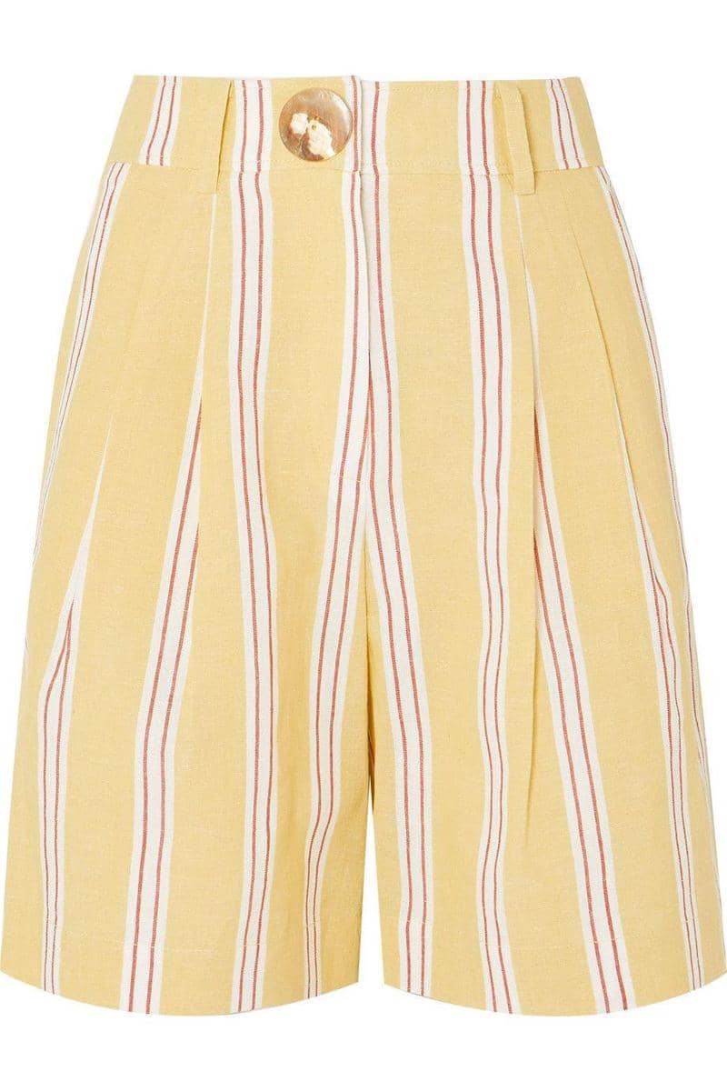 Renee striped cotton and linen-blend shorts, REJINA PYO, $316