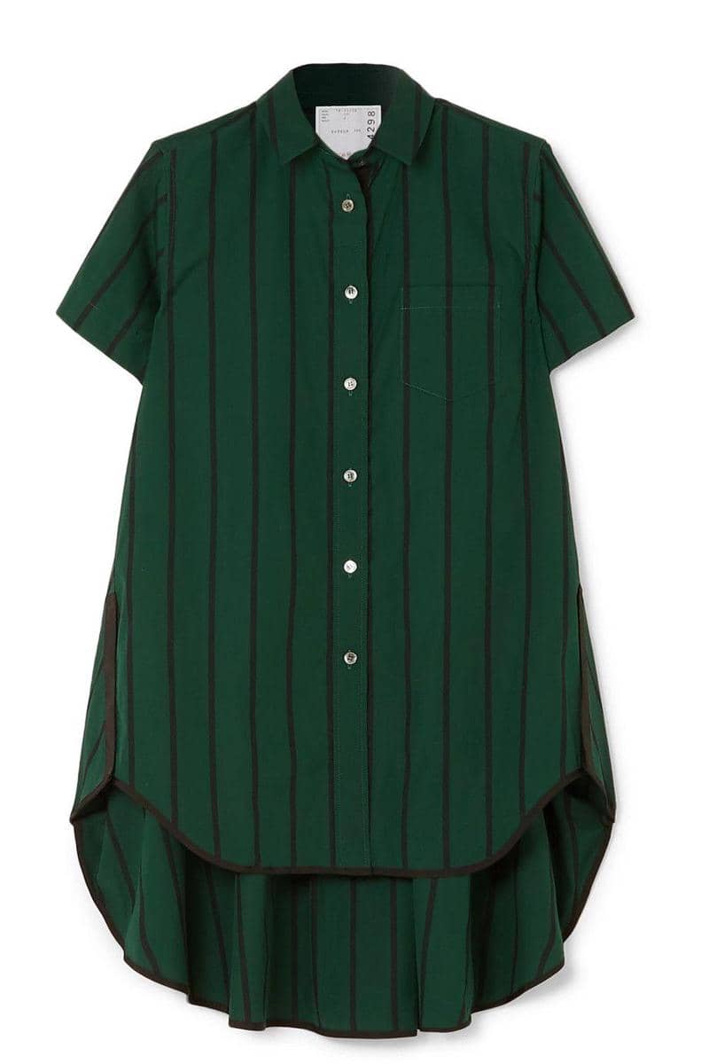 Asymmetric striped cotton-poplin shirt, Sacai, $363
