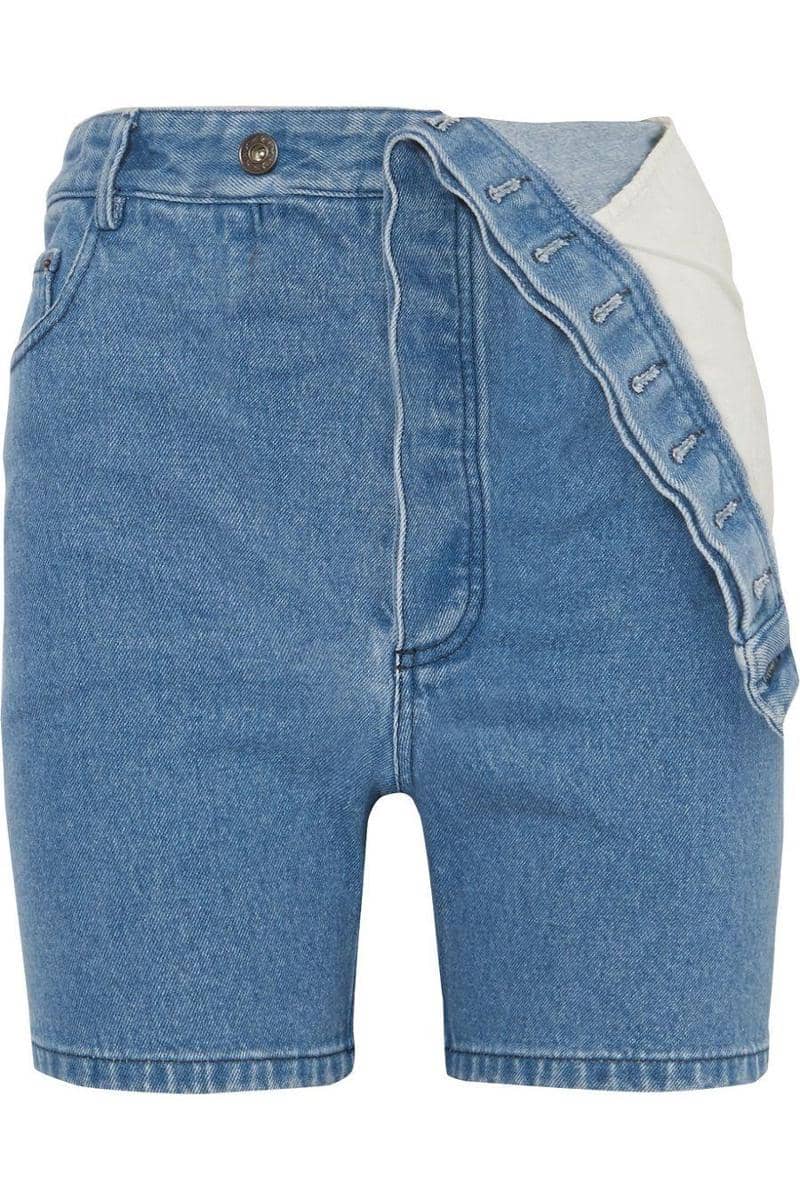 Asymmetric denim shorts, Y/PROJECT, $346