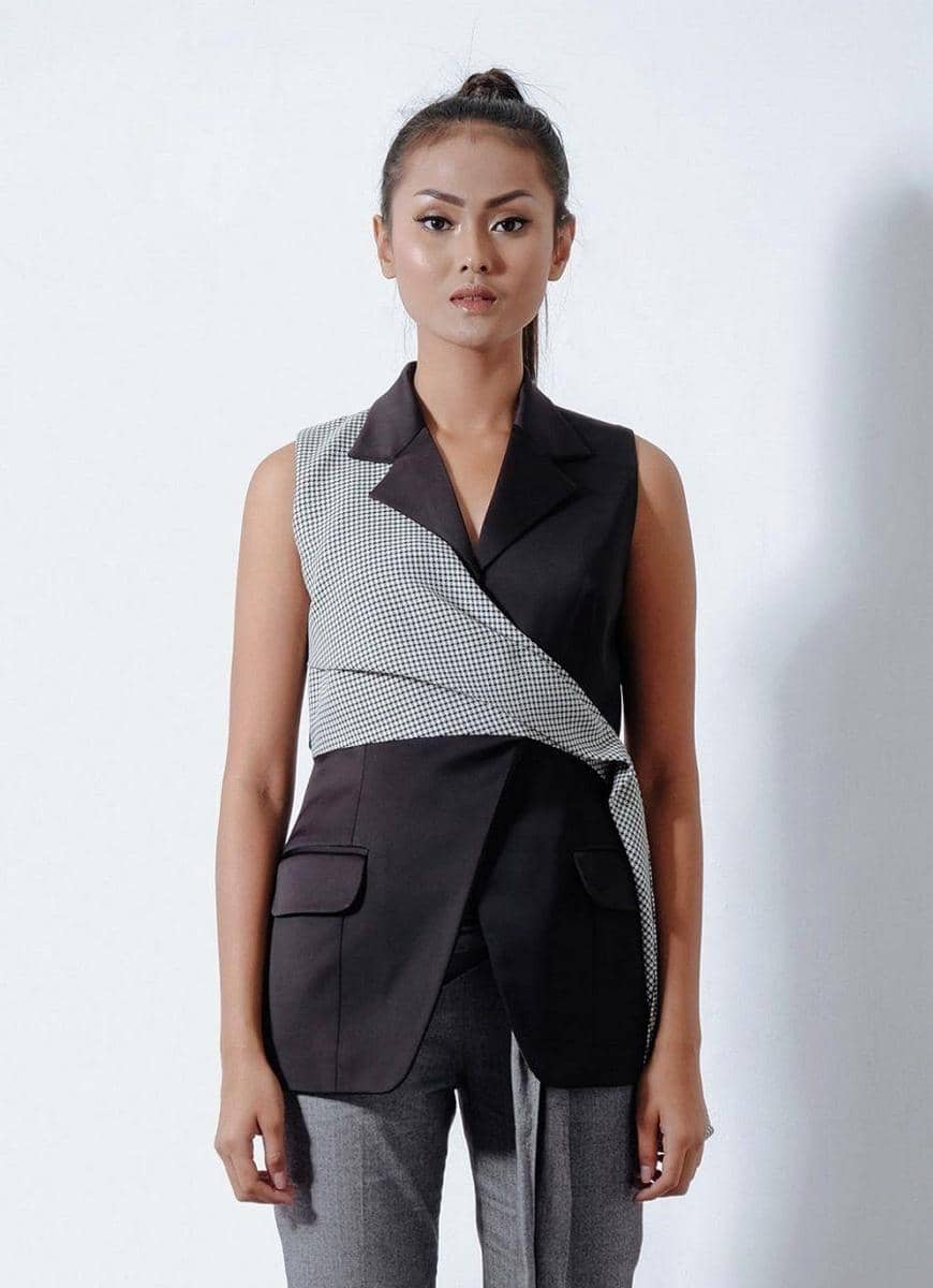 Houndstooth drape vest, Reves Studio, IDR 2,450,000