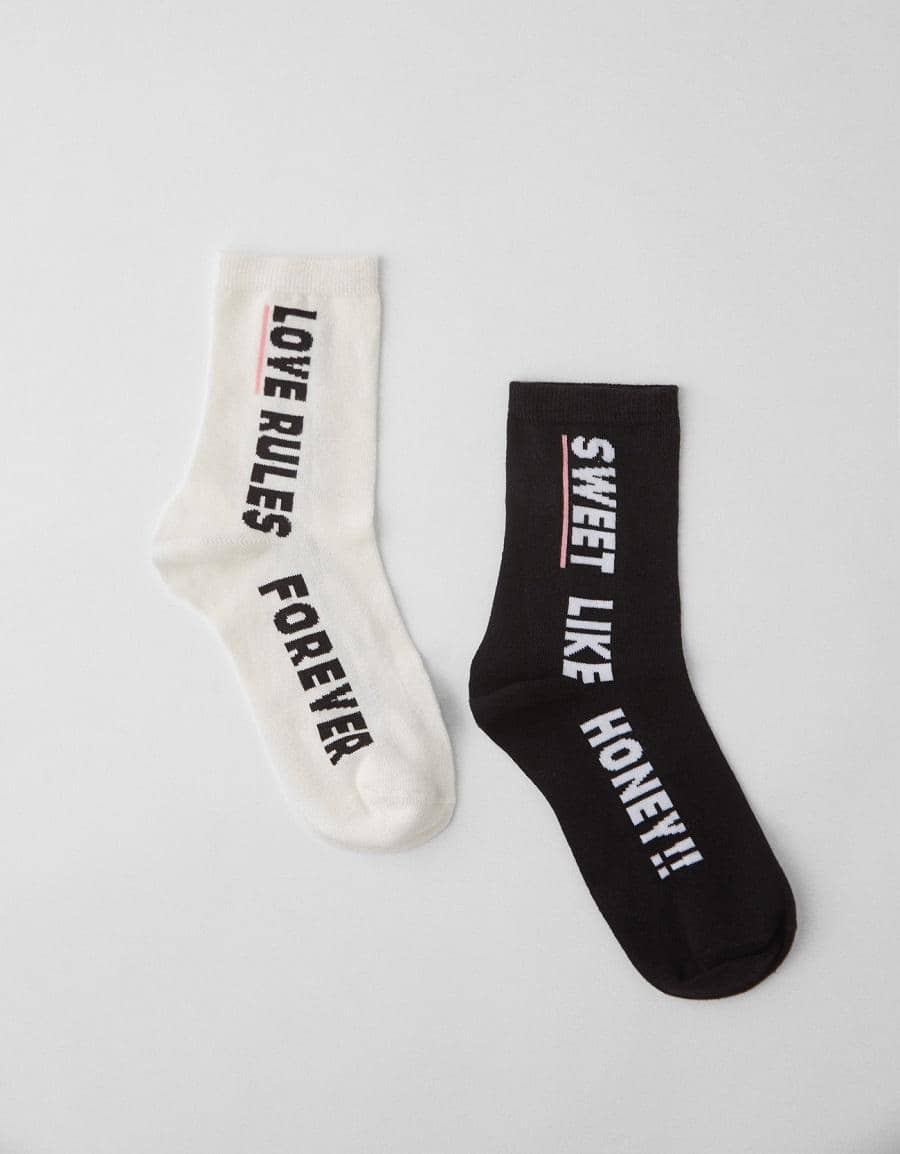 Pack of 2 pairs of socks with slogan, Bershka, IDR 119,900