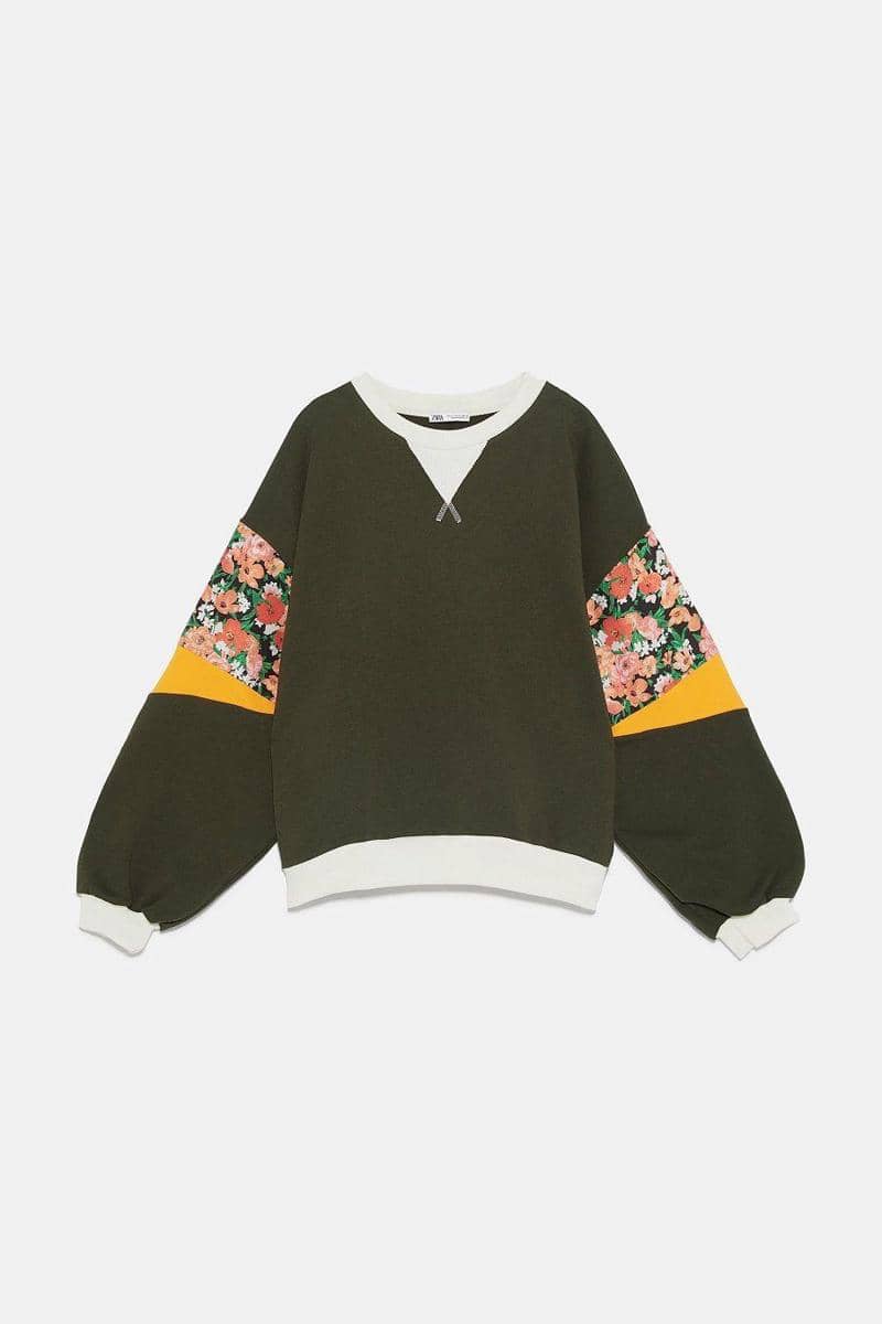 Sweater with contrast floral print sleeves, ZARA, IDR 599,900
