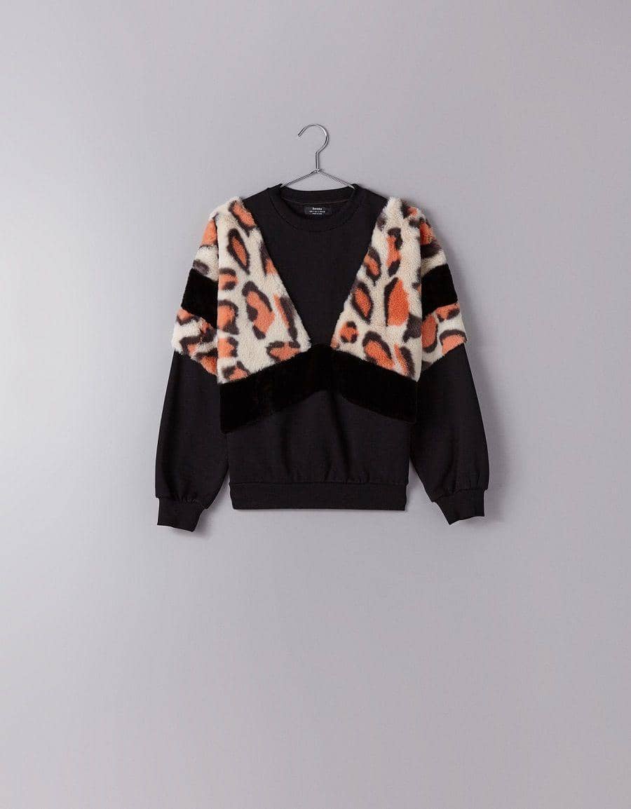 Combined leopard print sweatshirt, Bershka, IDR 339,900