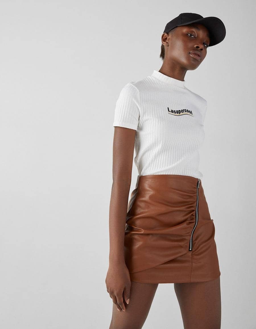 Bahan leather selalu berhasil membuat OOTD terkesan standout. Benar kan?! Mau dipadukan dengan kaos polos sekalipun kamu sudah otomatis terlihat standout. Dipakai untuk ke kantor pun it's ok, Bela! Salah satu formulanya, kamu dapat mix&match leather skirt milikmu dengan turtleneck long sleeve serta kitten heels. Intip pilihan busana bahan leather dari Popbela di bawah ini yuk! Kira-kira kamu naksir yang mana ya?