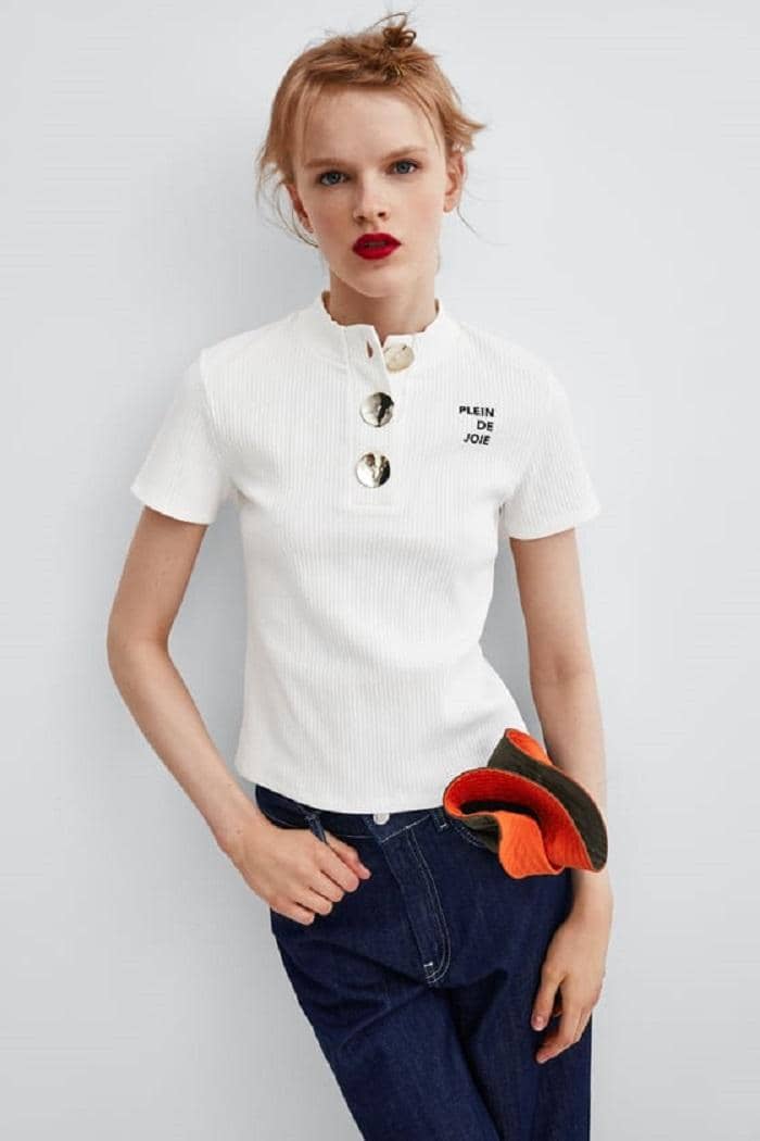 Ribbed T-shirt with button, ZARA, IDR 379,900