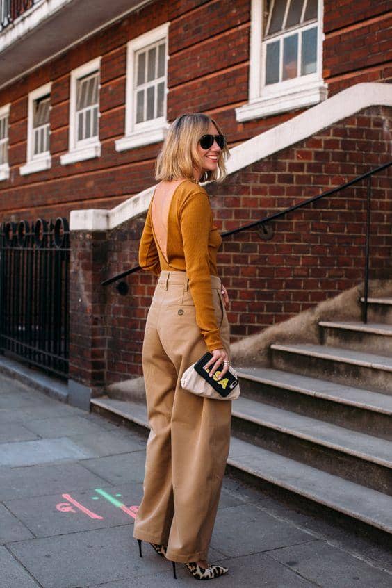 5. Mudah dipadukan dan effortlessly stylish! Pasangkan celana cokelat andalanmu dengan sweater rajut yang memiliki tone warna gelap. Untuk tas yang kamu kenakan, jangan lupa memilih warna sederhana seperti hitam atau putih.