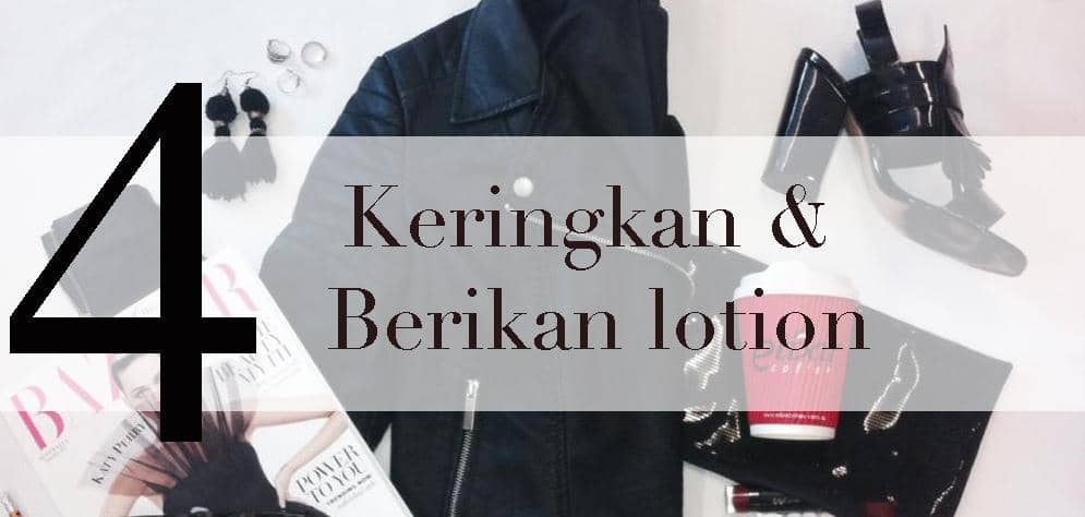 Setelah proses mencuci selesai, peras dengan pelan saja jangan sampai bahan mengkerut. Gantung dan keringkan dengan gantungan baju, lalu oleskan lotion agar bagian jaket kulit lembab dan tidak kaku.