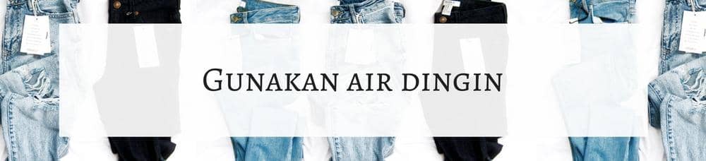 Selalu gunakan air dingin ketika mencuci jeans-mu. Air hangat atau panas bisa melunturkan warna. Selain itu, mencuci dengan air hangat dapat menyusutkan jeans. Sedangkan air dingin akan menjaga warna jeans tetap sama. Jadi pastikan kamu memperhatikan suhu air cucianmu yah.