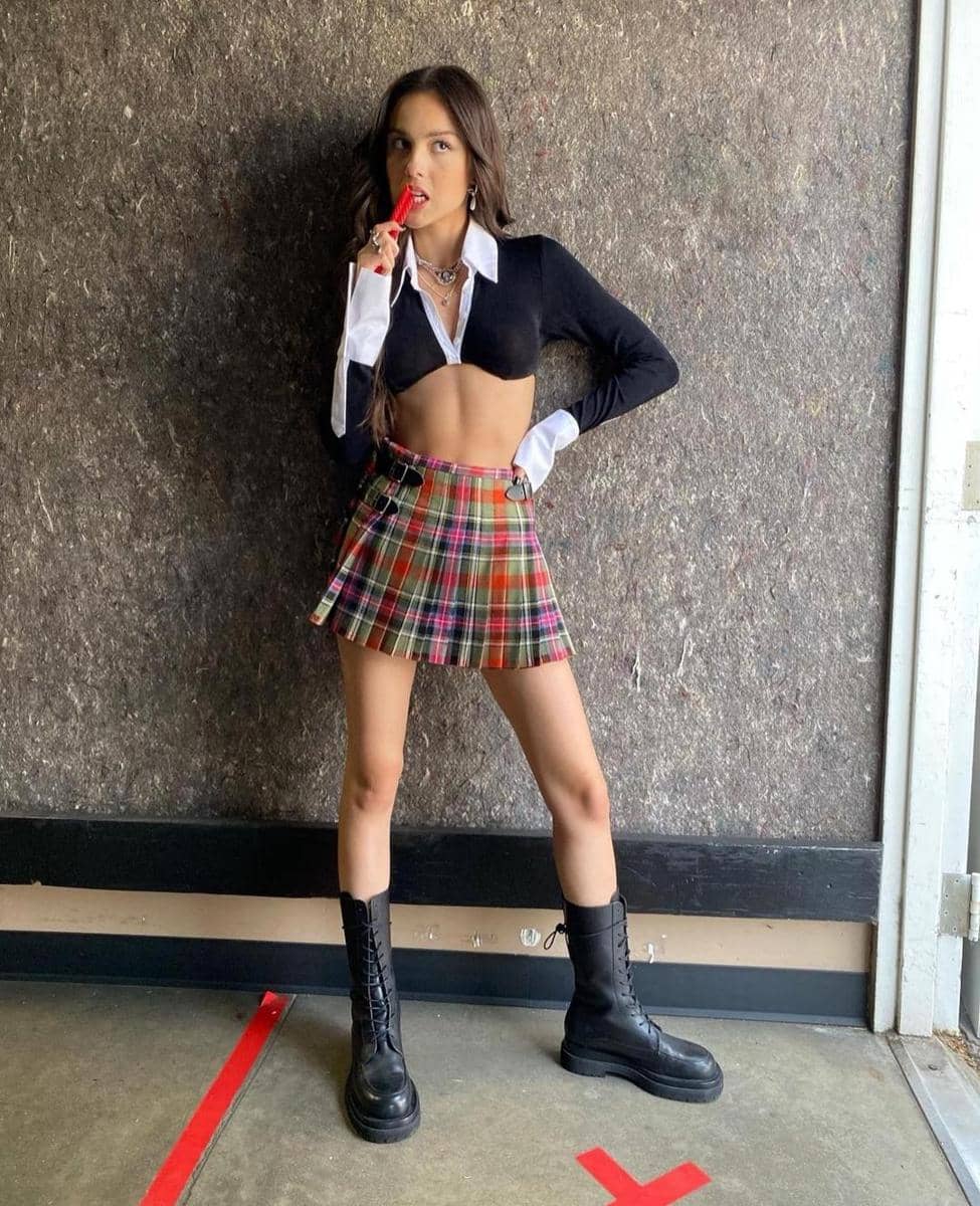 2. Tampil trendi a la tahun 2000-an, perpaduan cropped shirt dan plaid mini skirt bisa jadi andalan. Pilih sepatu boots sebagai penunjang penampilan.