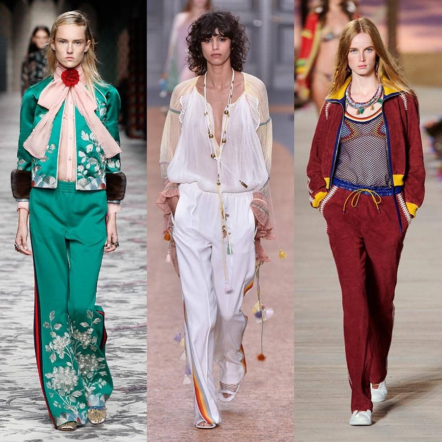 Gucci mengemas atribut olahraga ini dengan sedikit mewah yaitu menggunakan material silk dan menambahkan ornamen bordir pada koleksinya. Sedangkan Chloé's mengeksplorasi nuansa bohemian dengan desain flowy blouse. Kalau Tommy Hilfiger masih setia pada jalurnya yaitu casual sporty yang tetap terlihat atraktif dan bold.