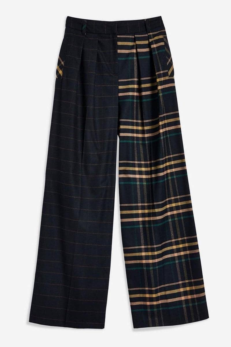 Mixed check wide leg trousers, Topshop, $100