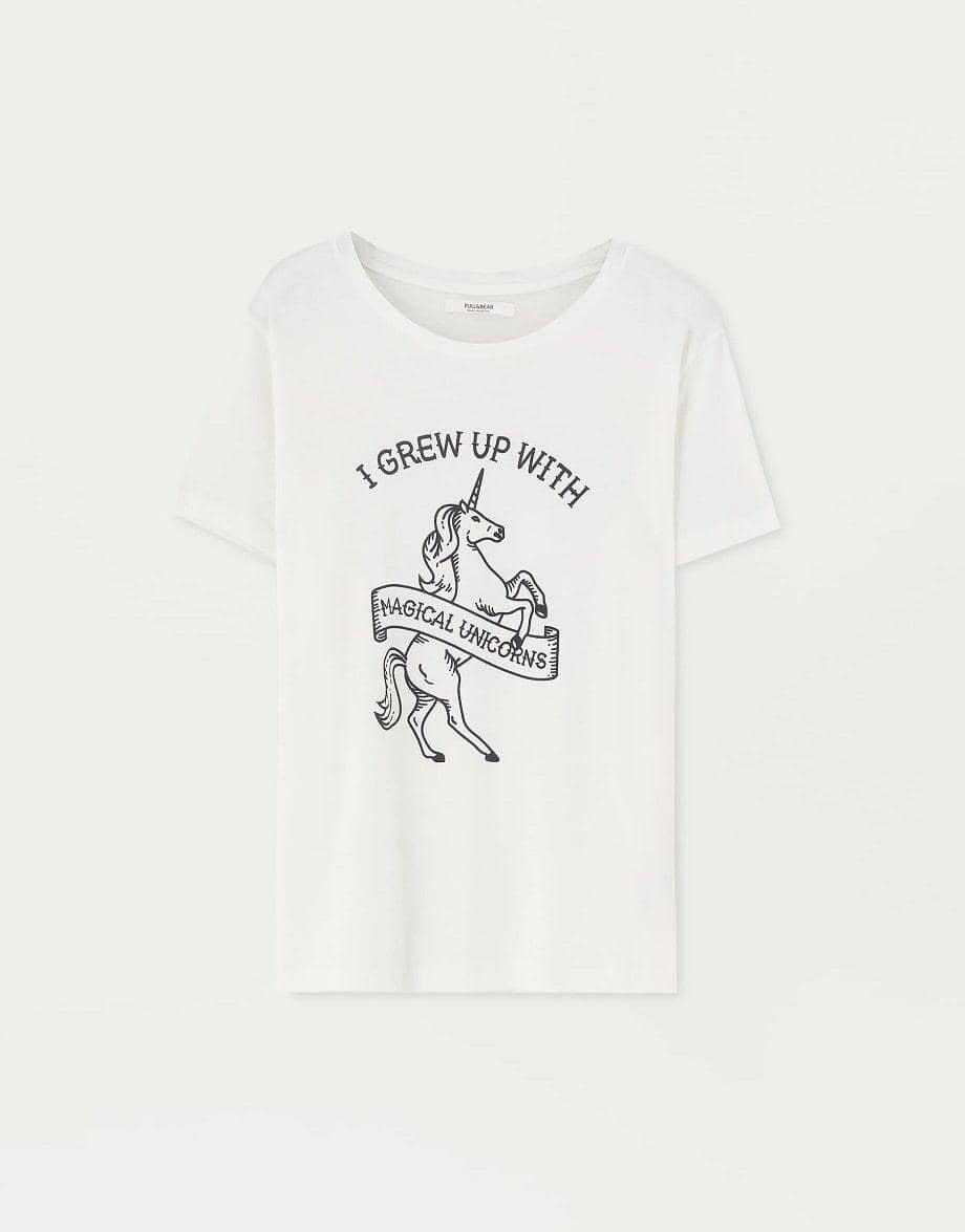 White unicorn T-shirt, Pull & Bear, IDR 109,900
