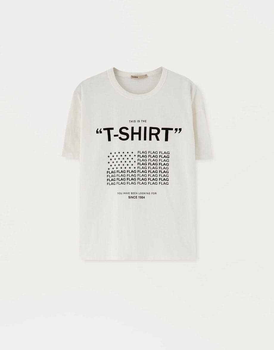 T-shirt with graphic slogan flag, Pull & Bear, IDR 229,900