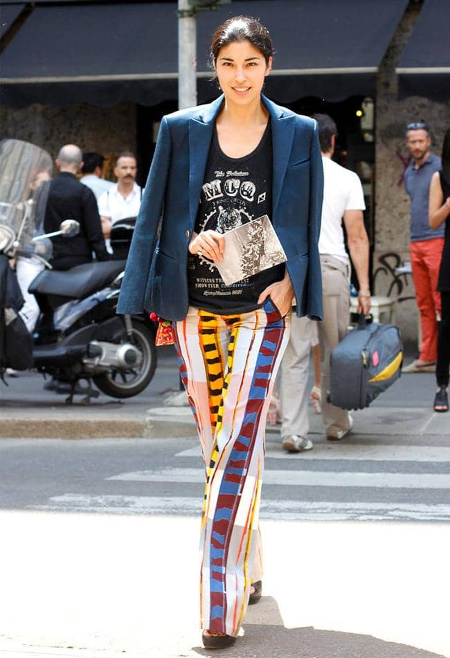 3. Celana dengan motif atau corak yang ramai juga bisa membuat tubuhmu terlihat lebih berisi dari sebenarnya lho, Bela.