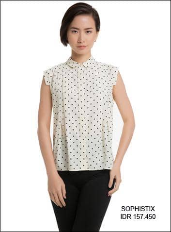 Dua motif klasik ini ternyata bisa menciptakan nuansa kontras yang unik lho. Kuncinya adalah pemilihan motif polkadot yang berukuran kecil sehingga tidak mendominasi tampilan.