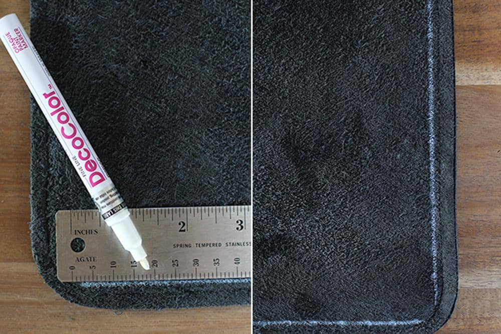 Buat titik kecil di garis yang sudah kamu buat, dan beri jarak 1 cm antara 1 titik dengan yang lain. Kemudian mulailah membolongi clutch dengan alat pembolong.