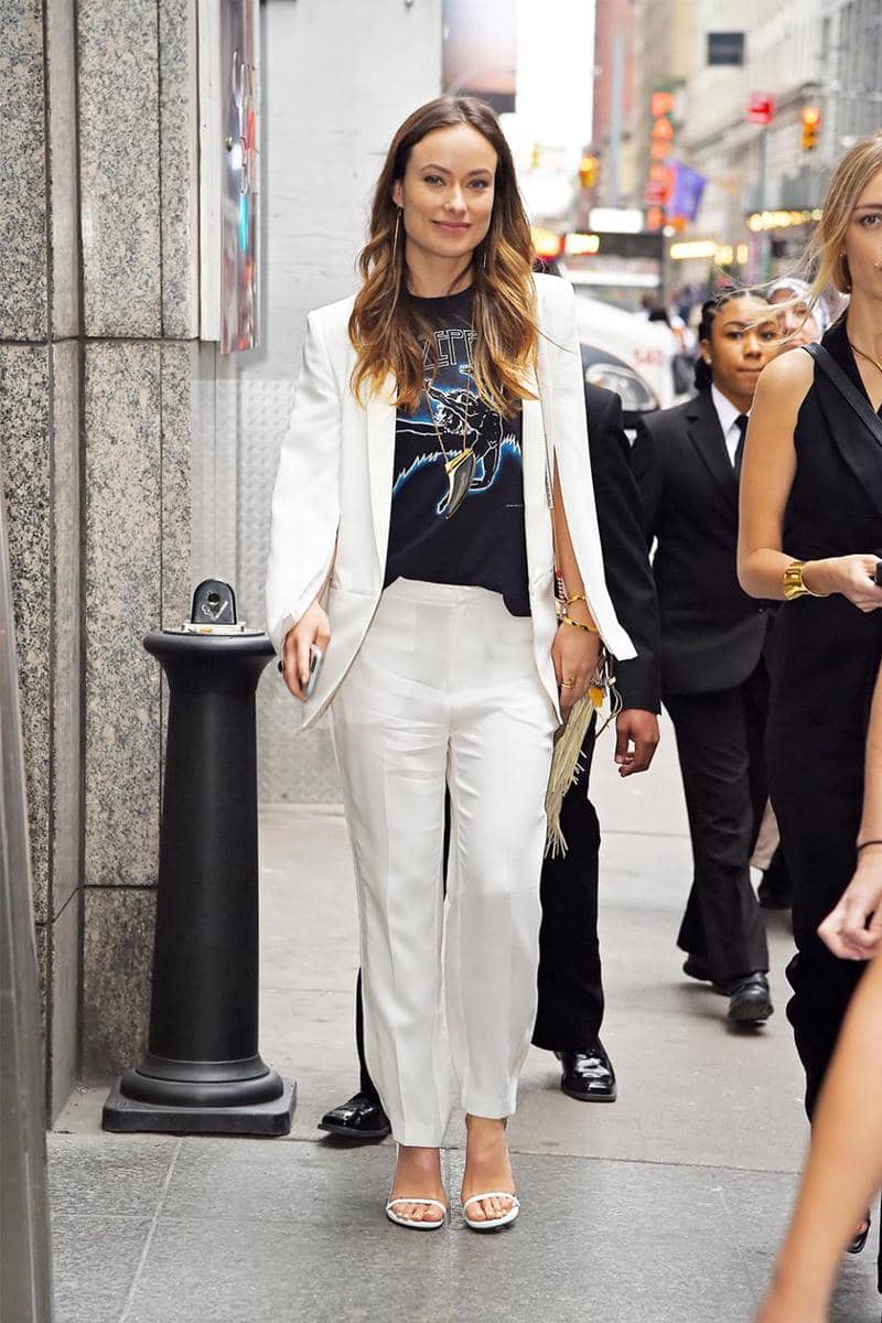 1. Olivia Wilde memilih memadukan kaos band favoritnya dengan suit style yang menghadirkan sisi rock chic.