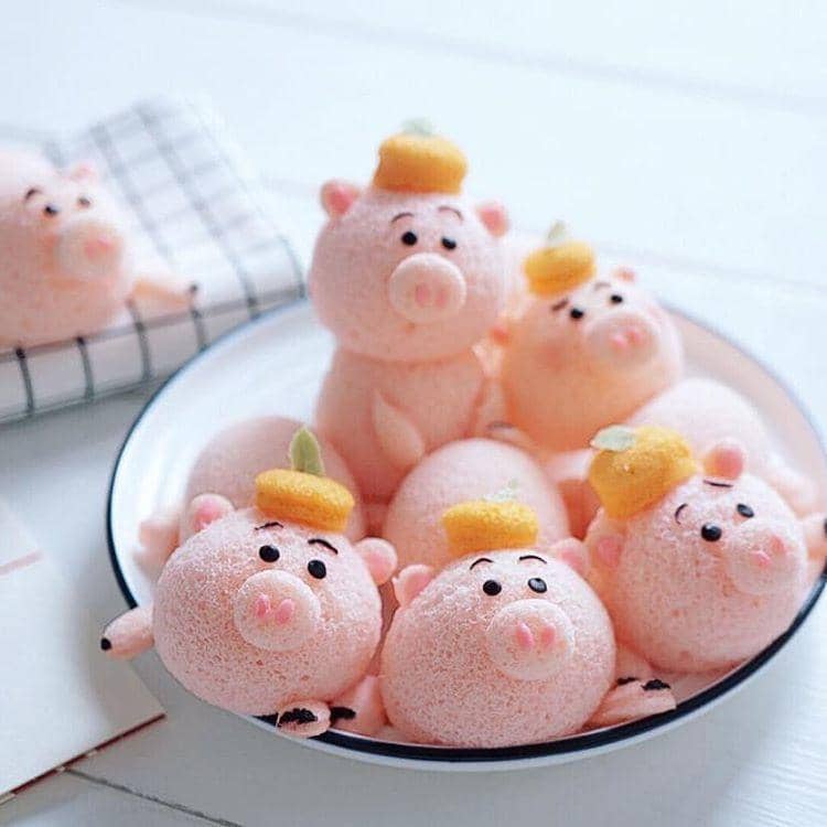 1. Sponge cake ini berbentuk babi. Wah lucu ya, apalagi ditambah dengan topi bewarna kuning yang ada di kepalanya