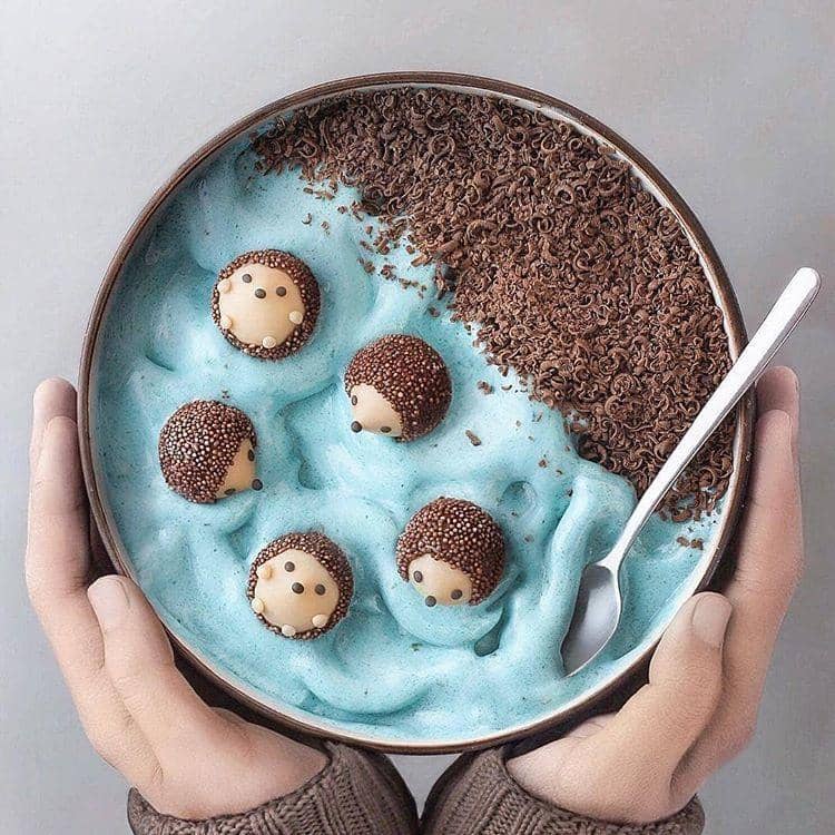 4. Smoothies blueberry ini terlihat lezat, tetapi landak lucu yang menjadi topping-nya membuat salah fokus ya