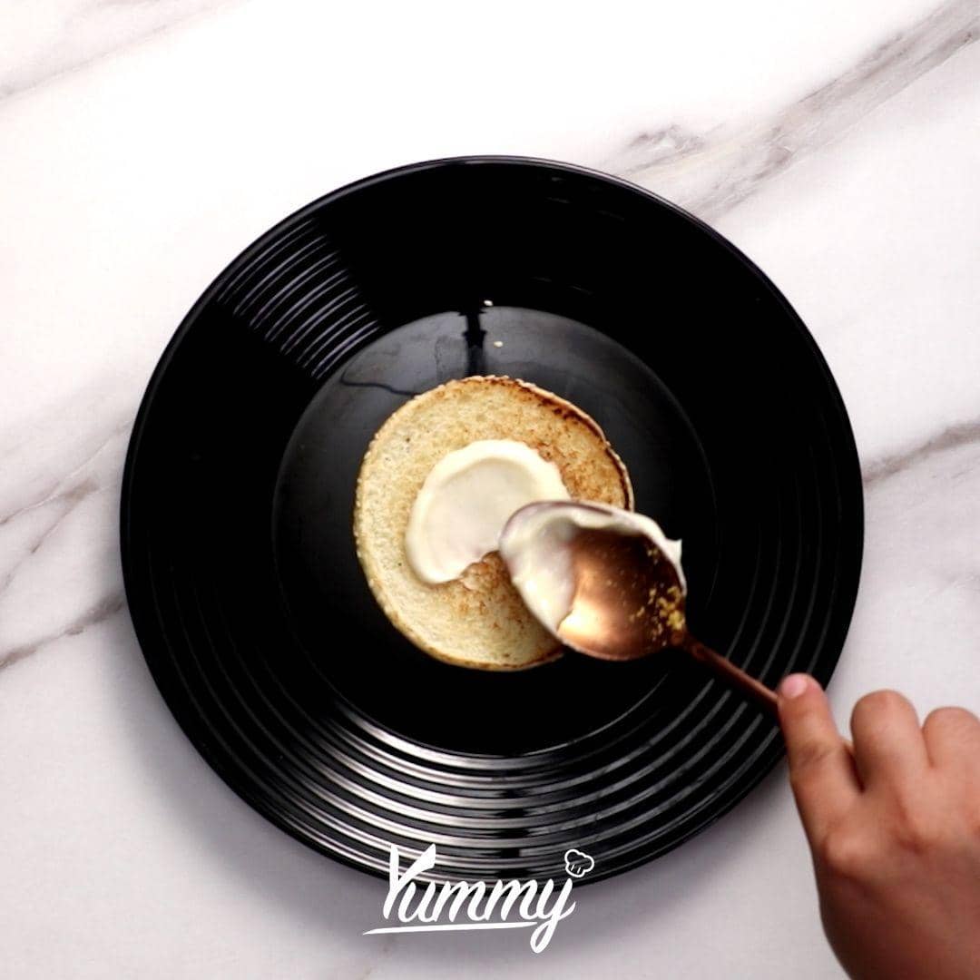 - Siapkan roti burger yang sudah dipanggang, olesi dengan saus cheetos, lalu beri selada.