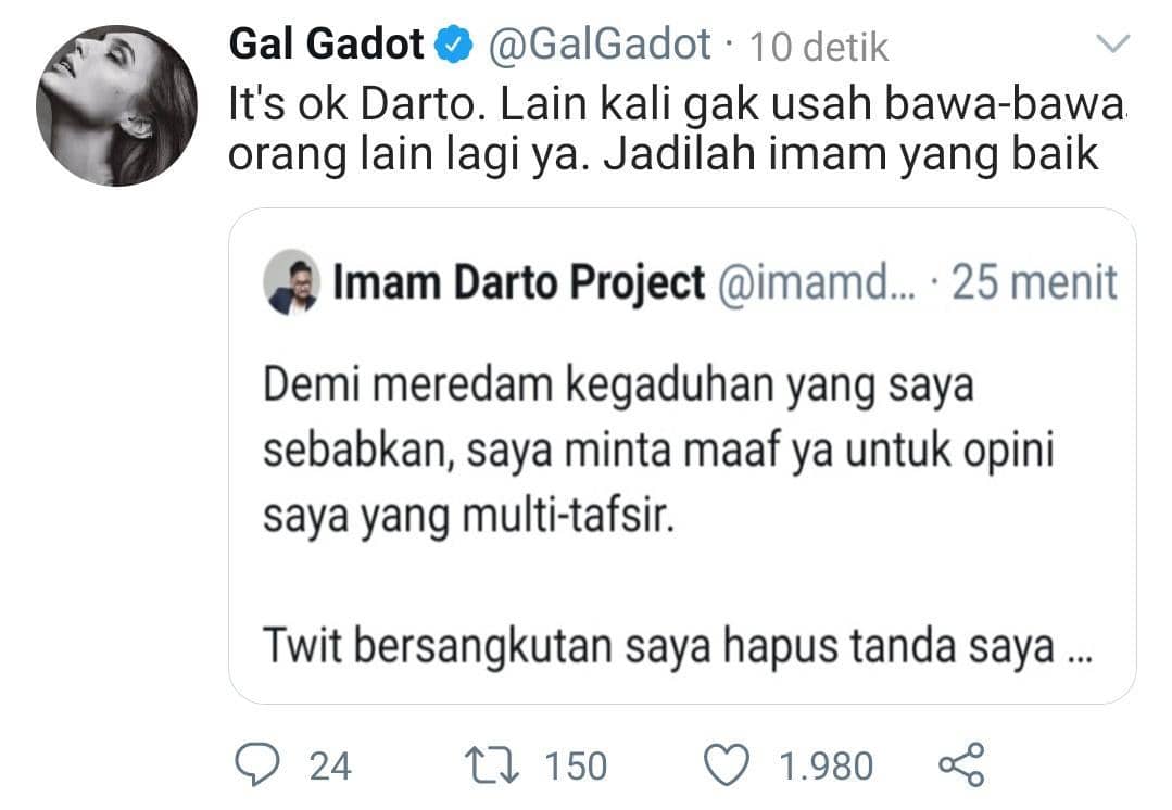 10. Atau Gal Gadot memaafkan Darto? Menurut kamu gimana?