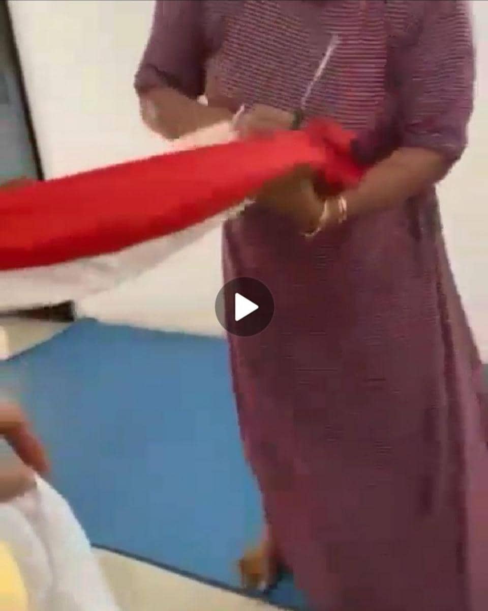 Dari rekaman video yang beredar, terlihat aksi gunting bendera itu disaksikan oleh anak-anak. Erdi mengatakan, anak itu acap kali memegang Bendera Merah Putih dalam kesehariannya. Diduga marah anaknya terlalu lama memegang bendera, emak-emak itu kemudian menggunting bendera tersebut.