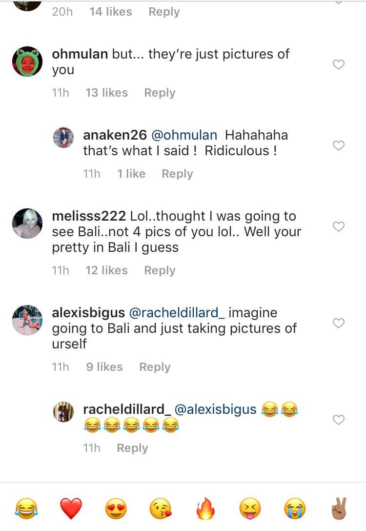 4. Akun @alexisbigus pun ikut berkomentar pada foto Kim, ia meninggalkan komen “Bayangin lo dateng ke Bali dan cuma foto diri sendiri”