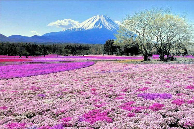 Tempat yang memanjakan keindahan bunga-bunga phlox berwarna merah muda terletak di bawah kaki gunung, Gunung Fuji. Lahan seluas 10 hektar tersebut hanya ditanami bunga-bunga phlox merah jambu yang semakin terlihat indah jika diandang dari jauh. Selain keindahan bunga-bunganya, karena terletak di bawah kaki gunung, Gunung Fuji, terlihat pemandangan gunung tersebut yang semakin menambah keindahan dengan alam yang asri. Nah, ketika kamu datang di bulan Juli-September akan ada sebuah jamuan yang dilakukan setiap tahunnya yaitu jamuan minum teh dan es krim papermint gratis.