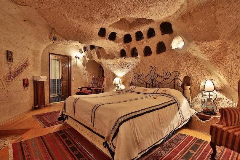 Salah satu hotel yang berada di dalam gua ini terletak di Anatolia Tengah yang merupakan kawasan bangunan-bangunan bersejarah. Banyak penawaran tur yang dihadirkan di tempat ini seperti hiking, menunggang kuda, bersepeda, dan menaiki balon udara. Selain itu di masing-masing kamar terdapat jacuzzi (kolam pemandian kecil). Cocok untuk kamu yang menyukai bangunan-bangunan tua, ini adalah pilihan terbaik.