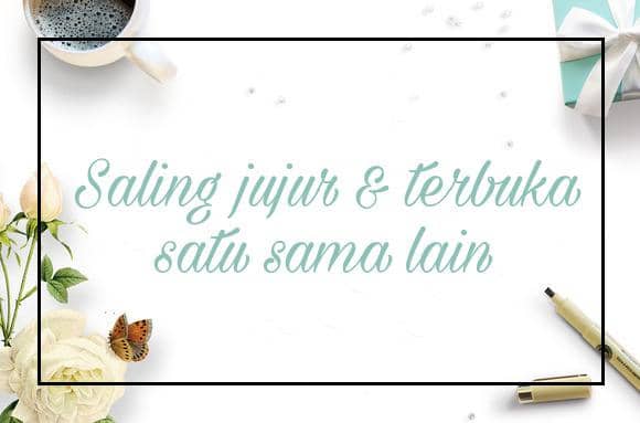 Kalau dari sekarang kalian sudah sering berbohong atau menyembunyikan sesuatu, nanti kalau sudah punya momongan bagaimana ceritanya? Kalian harus saling mendukung dan jujur, meskipun ada kenyataan pahit yang akan sulit diterima masing-masing dari kamu. Kalian akan jadi teladan bagi anak-anakmu kelak, lho.