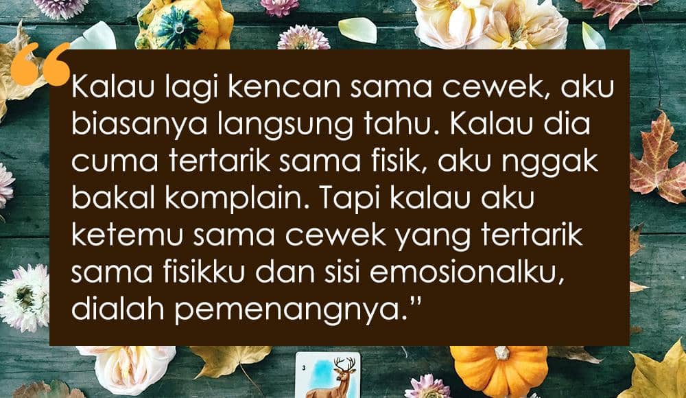Mencari pasangan yang tepat memang membutuhkan waktu yang nggak sebentar. Nggak hanya cewek yang perlu teliti dalam memilih calon pasangan, cowok juga bisa menilai apakah lawan jenis yang ada di hadapannya termasuk tipe cewek yang hanya ingin main-main atau cewek yang bisa dia bawa ke pelaminan. Ketika bersama dengan cewek, apa sih yang sering muncul di pikiran cowok? Meski blak-blakan, inilah beberapa pengakuan yang jarang mereka ungkapkan langsung di depan cewek.
