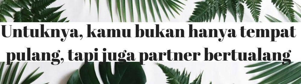 Kemana saja dia pergi, dia akan kembali padamu. Meski tak banyak hal yang kamu tawarkan, tapi cinta yang tumbuh diantara kalian mampu membuatnya merasa cukup. Tapi tak hanya rumah, baginya kamu adalah partner sempurna dalam menjalani kehidupan.