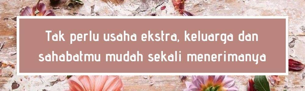Penerimaan begitu mudah kamu dapatkan dari lingkaran terdekat. Dia mampu melebur dalam perbincangan hangat dengan om dan tantemu di pertemuan keluarga, pun saat kamu dan sahabat-sahabatmu bernostalgia. Bukan tak mungkin, memang cuma dia yang bisa.