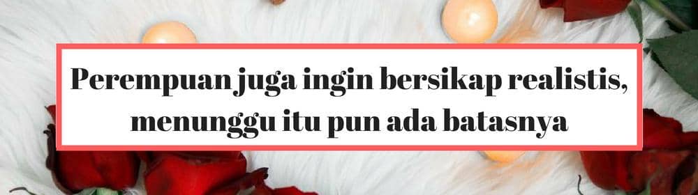 Seringkali banyak perempuan yang memilih untuk nggak terus-menerus menunggu. Lebih baik rasanya untuk mengakhiri penantian dan menunggu saat dia yang meminta menunggu nggak pernah memberikan kejelasan. Mengakhiri menunggu, lalu memilih laki-laki yang memberikan kejelasan. Tentu ada alasan dan penyebab yang dirasanya sebagai sesuatu yang logis dan realistis. Nggak selamanya cintanya harus digantungkan, nggak selamanya statusnya harus diombang-ambingkan. Sedangkan waktu terus berjalan, dan usianya semakin hari semakin menua.