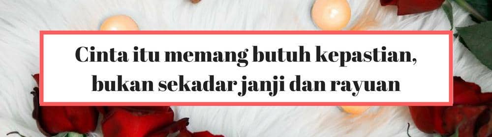 Rayuan dan janji nggak akan terwujud, jika memang selama ini terus ditunda dan ditunda. Seolah dia yang memberikan janji punya alasan baru untuk menundanya. Bukan sifat perempuan yang ingin disegerakan, namun ia berharap bahwa masa depan cintanya nggak dipermainkan.