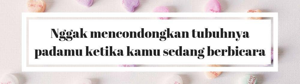 Jika seseorang tertarik padamu, ia akan mendengarkanmu menggunakan seluruh tubuhnya. Itu termasuk dengan membuat kontak mata, memberikan pertanyaan, serta mencondongkan tubuhnya padamu. Ketika kehilangan rasa, ia akan menjauhkan badannya darimu dan terasa ada jarak di antara kalian.