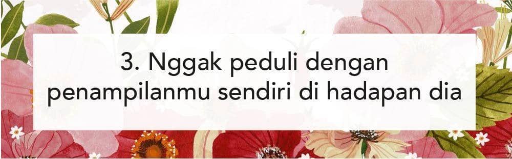 Sering menghabiskan waktu dengan pasangan membuat kita kadang menjadi diri sendiri. Bahkan kamu merasa pasangan kamu akan selalu menerima kamu apa adanya. Memang benar harus selalu bangga menjadi diri sendiri, tapi nggak salah juga lho kalau tampil dengan menarik khusus untuk pasanganmu. Hal ini akan membuat pasangan merasa spesial saat bersamamu.