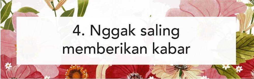 Karena kamu sudah sering bersama dan melewatkan hal-hal bersama, bagi kamu saat pasangan sakit adalah hal yang wajar. Kamu menganggap kalau sakit pasti akan sembuh. Memang seperti itu, namun kalau kamu juga bahkan nggak memberikan perhatian yang lebih saat dia membutuhkan perhatian ini adalah hal yang nggak baik.
