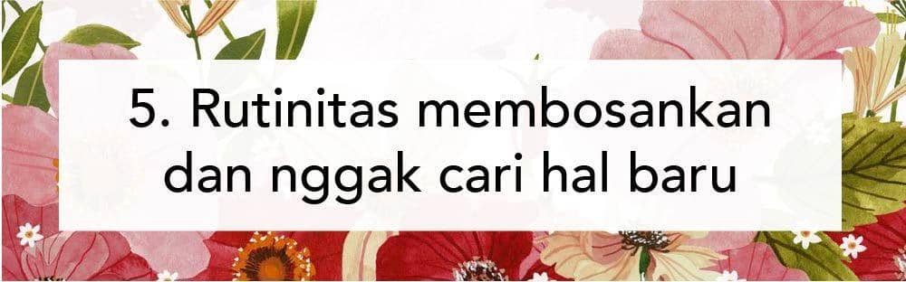 Lamanya hubungan seseorang akan membuat mereka bertemu pada titik bosan. Mungkin kamu saling menghargai satu sama lain dan saling memberikan me time. Bosan itu wajar, namun kalau kamu dan pasangan nggak beranjak dari fase bosan, hal ini bisa menjadi fatal lho, Bela. Bisa-bisa rasa cinta yang ada pada hubungan kalian akan memudar.