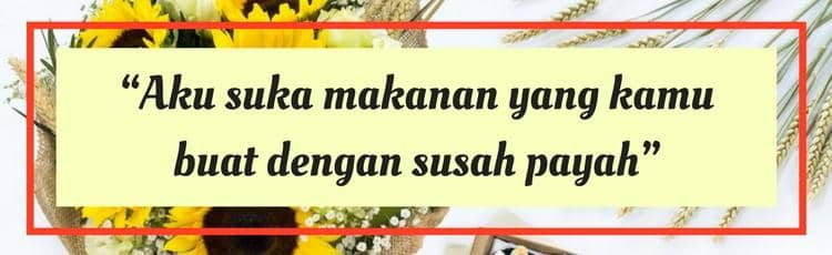 Setelah bersusah payah membuat makanan khusus untukmu, nggak ada salahnya memuji usaha yang telah dilakukannya. Meski rasanya sedikit keasinan atau bahkan sedikit gosong, komentar positif darimu tentu hal pertama yang ingin didengar olehnya. Ingat, nggak ada orang yang langsung berhasil hanya dalam sekali mencoba. Menghargai jerih payah yang dilakukannya dapat menjadi semangat untuk belajar membuat masakan yang lebih baik.