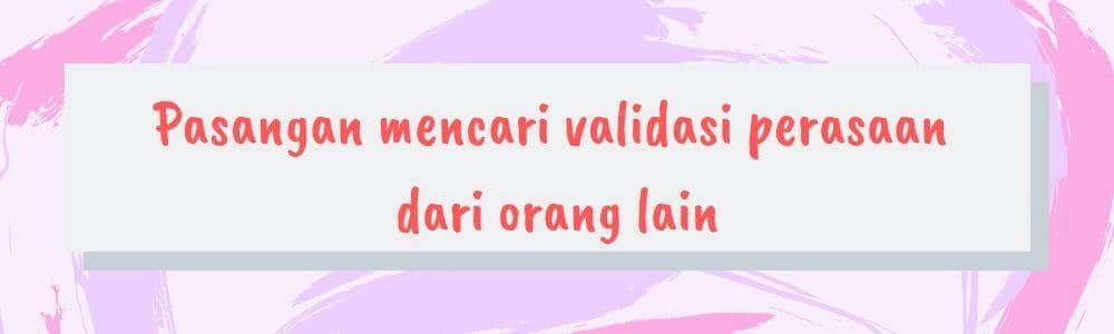 Tentu, rasanya menyenangkan untuk dapat dihargai oleh orang lain di luar pasangan. Namun jika pasangan selalu mencari perhatian dari orang lain, menanyakan keabsahan perasaannya dengan berbagai macam cara dari orang luar, kemungkinan ia memiliki masalah yang lebih serius. Sikapnya ini wajar mengundang rasa cemburu dari dalam dirimu. Kalau merasa kurang nyaman, ajak pasangan untuk membicarakan sikapnya tersebut agar dapat membuat suasana hubungan yang lebih sehat.