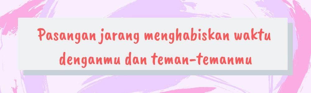 Hal ini wajar terjadi karena sikapnya tersebut memunculkan berbagai pertanyaan dalam kepalamu, seperti "Apa pasangan nggak menganggap hubungan ini serius?" atau, "Apa pasangan nggak suka dengan teman-temanmu?" Apa pun alasannya, kamu perlu membicarakannya dengan pasangan.