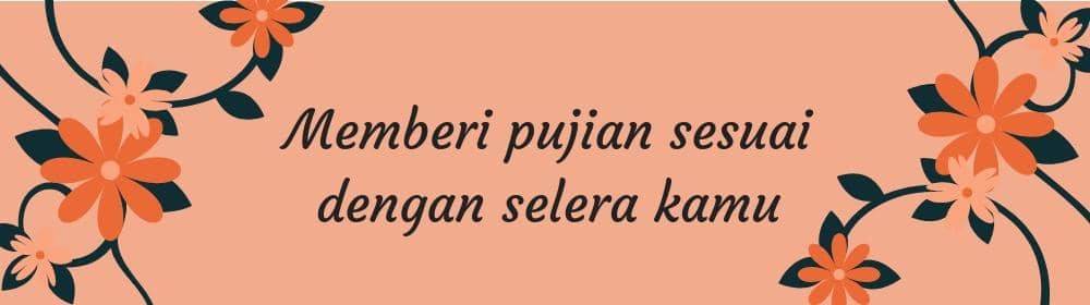 Memberikan pujian, harus disesuaikan dengan selera pasanganmu, bukan dengan selera kamu. Bagaimanapun gaya rambut dan gaya berpakaian yang mereka kenakan, jika itu sesuai dengan seleranya, maka hargailah selera mereka dan berikan pujian. Jangan sampai kamu nggak memberinya pujian hanya karena kamu nggak menyukainya, karena hal itu akan membuat dirinya merasa nggak dihargai.