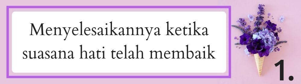 Pertengkaran akan membuat suasana hati memanas. Maka langkah terbaik untuk menyelesaikan masalah ini ialah dengan menenangkan diri terlebih dahulu. Kemudian setelah suasana hati sudah membaik, barulah mereka akan menghubungi pasangannya. Dia akan mengungkapkan apa yang membuatnya kesal pada pasangannya ini di waktu yang tepat.