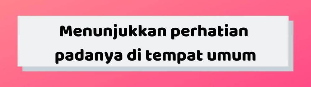 Nggak ada yang lebih membuat bahagia perempuan selain pasangannya yang menunjukkan perhatiannya di tempat umum. Nggak perlu terlalu berlebihan, sikap seperti menggenggam tangannya, mencium punggung tangannya, mencium keningnya, sudah cukup menjadi bentuk perhatian padanya di hadapan banyak orang.